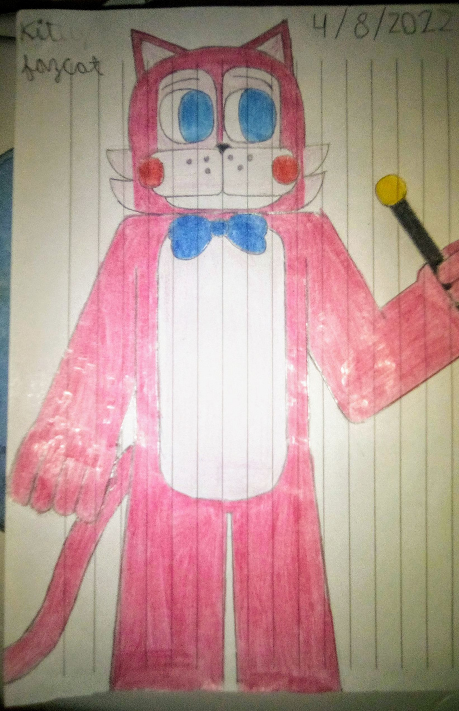 Estas es la versión masculina de Kitty fazcat del fangame de fnaf el regreso de Freddy se llama kit fazcat
