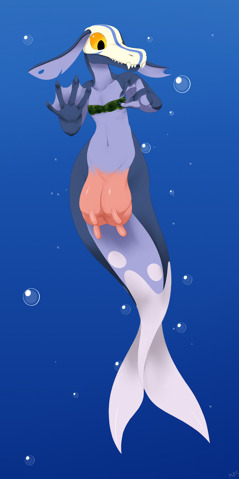 ijones12 got a pic of their Kobold character White Tail, as a mercow, cowmaid, mer... I guess MerCow sounds better? Cowmaid sounds like a Cow who does the cleaning. Anyway, I guess this is rather unconvential to what I usually do, a scaly anthro with an udder.