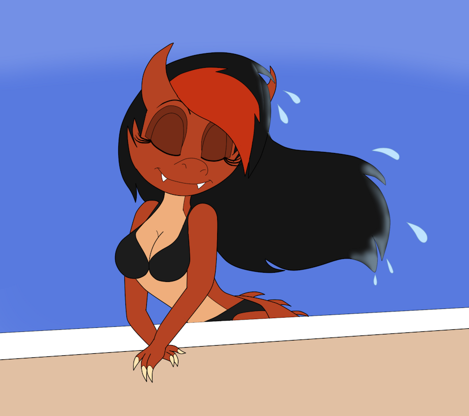Here's Deanna (daughter of Lord Dragaunus) flipping her hair after surfacing out of a swimming pool
