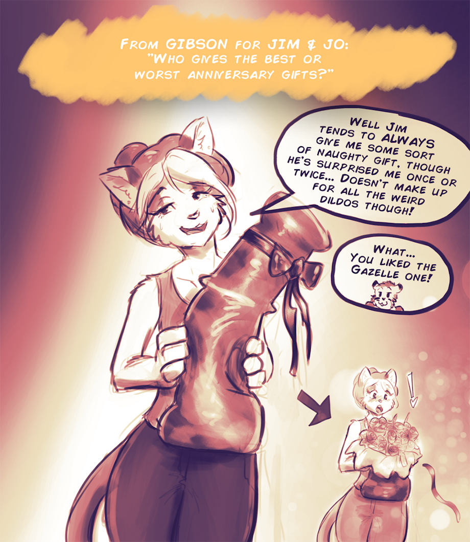 This weeks ask the Cast comes from Gibson : For Jim &Jo: who gives the best or worst anniversary gifts - Looks like Jim pulled a fast one here.. I doubt Josie minds :) Hmm I'd love to see her use the Gazelle on though!