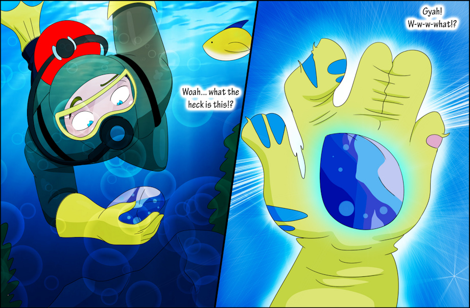 The leg of my diving suit and my bright yellow flipper struggled to contain the expanding limb inside, and as my changing limb pushed to get out, they finally burst to reveal the giant blue flipper of a Lapras!