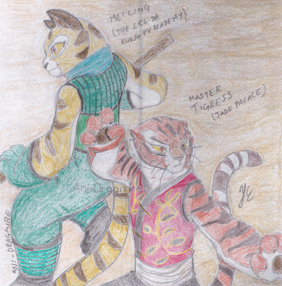Artwork (with permission of the artist AniDragmire) of Kung Fu Panda: Mei Ling & Tigress: A kick-ass duo (2022-08-14).