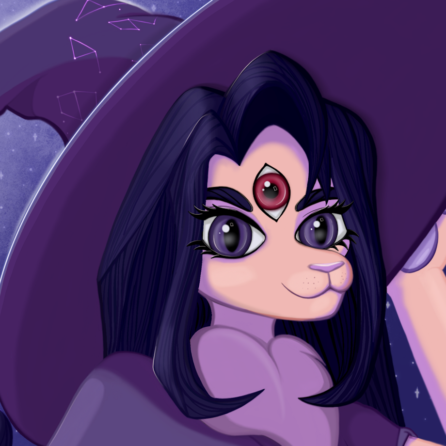 Mmmmm! Now this is just out of this world! X3 An outstanding portrait shot of my cute lion witch gal, Belladonna done by the wonderful Shady_Girl! :D They did a lovely job on this. I love how they did Bella and her hair in this as well as all the colors in this. It's so purple in this but it never outright clash againt her or the backdrop fitting the calm feel of the night sky and the stars. ^^
