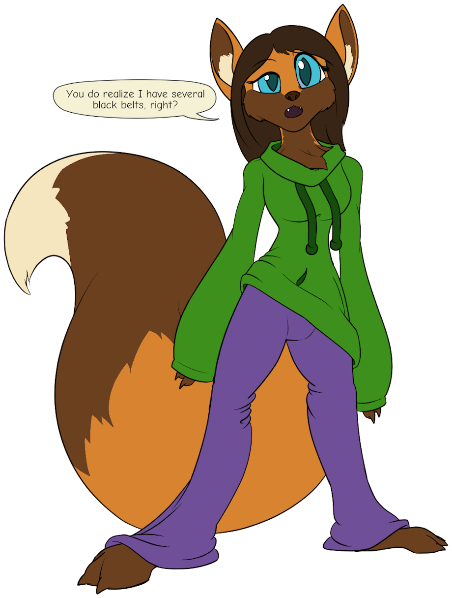 Finally finished, I think! I was working on this on Twitter before posting it elsewhere, so I had an eye-piercingly saturated version and an original-colors version before we got to this one. The longer sweater and sweatpants are something I did to try to keep her differentiated from Butter and my other characters with long sleeved tops. To make this one, I put the eye-piercingly saturated one on top of the other at 50 percent and copied the resulting colors onto the final.