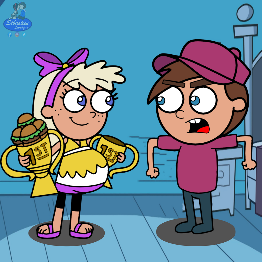 Just to change the evil of the place, I made a "scene redraw of the episode "Which is Wish" of The Fairy OddParents. I love how full Chloe's belly is when she has won two trophies.