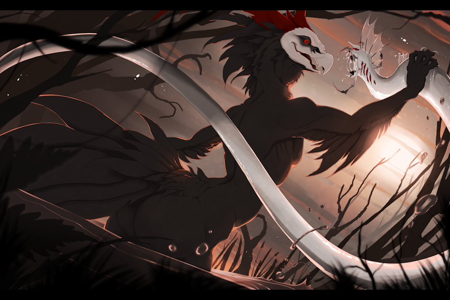Special Illustration with Bellatrix contending with swamp critters for enjoyment... for now.