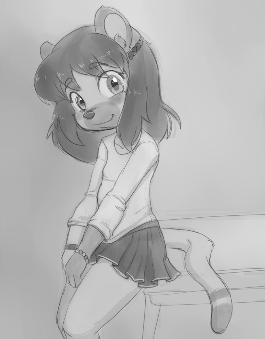 Oops, breeze is blowing her skirt up! Good thing she has panties on~