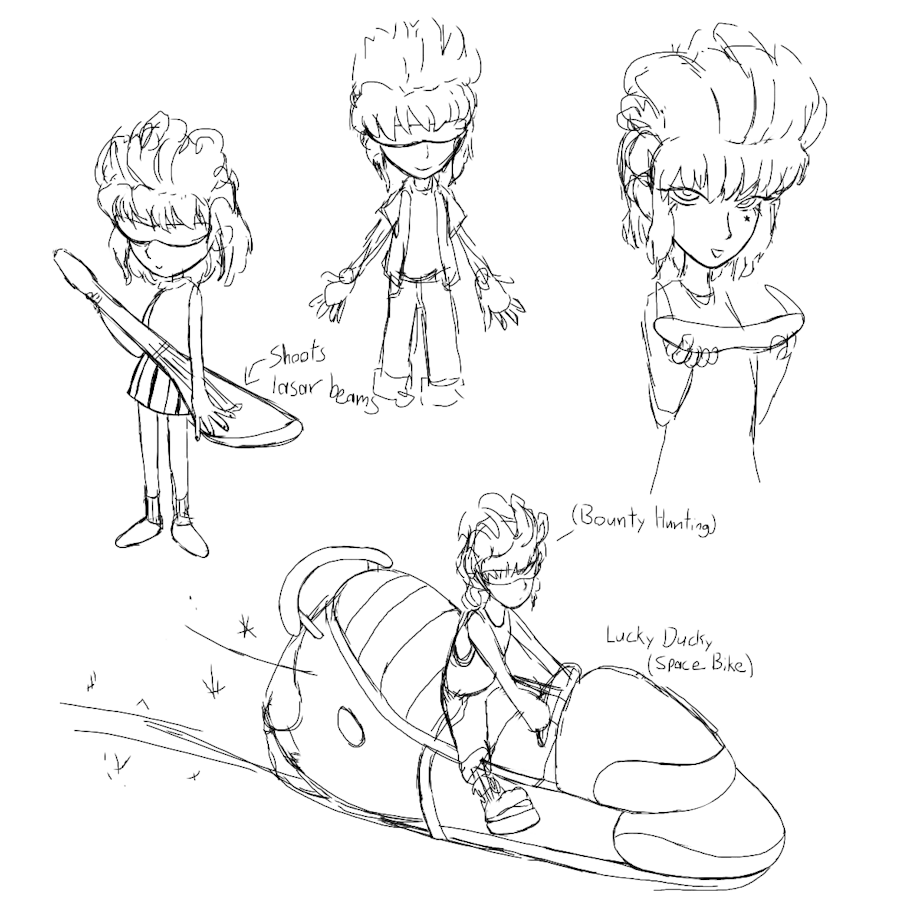 a guitar that harnesses star-energy inside her & shoots off a blast, it's strength depends on a culmination of physical & mental condition