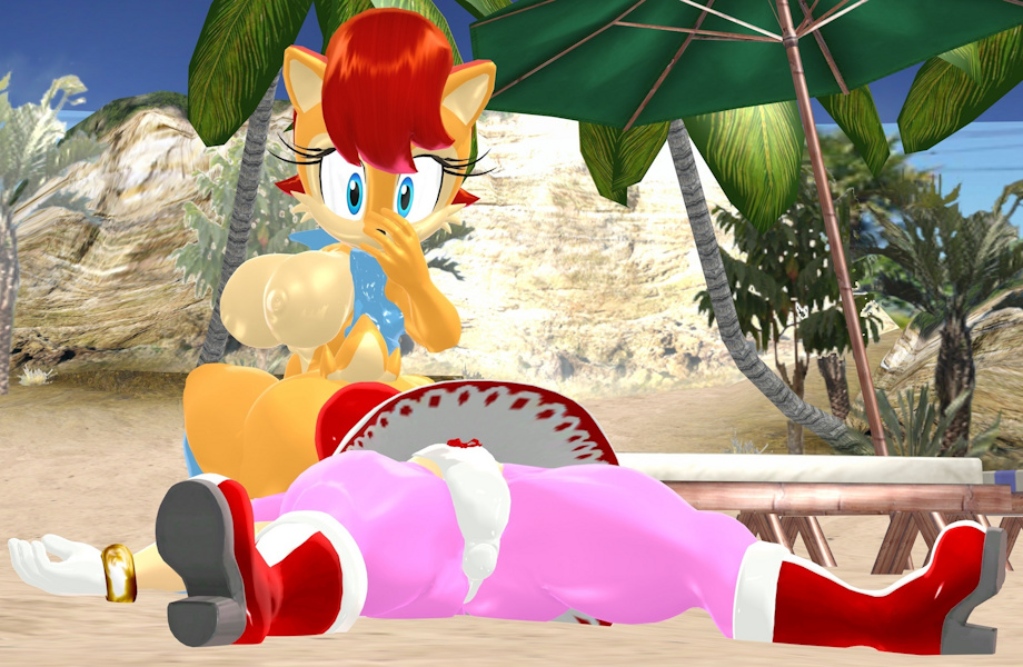 Sally was a bit too happy seeing Amy and somehow caused her butt to land on Amy's face. She may be unconscious, but she probably has a nice view~.