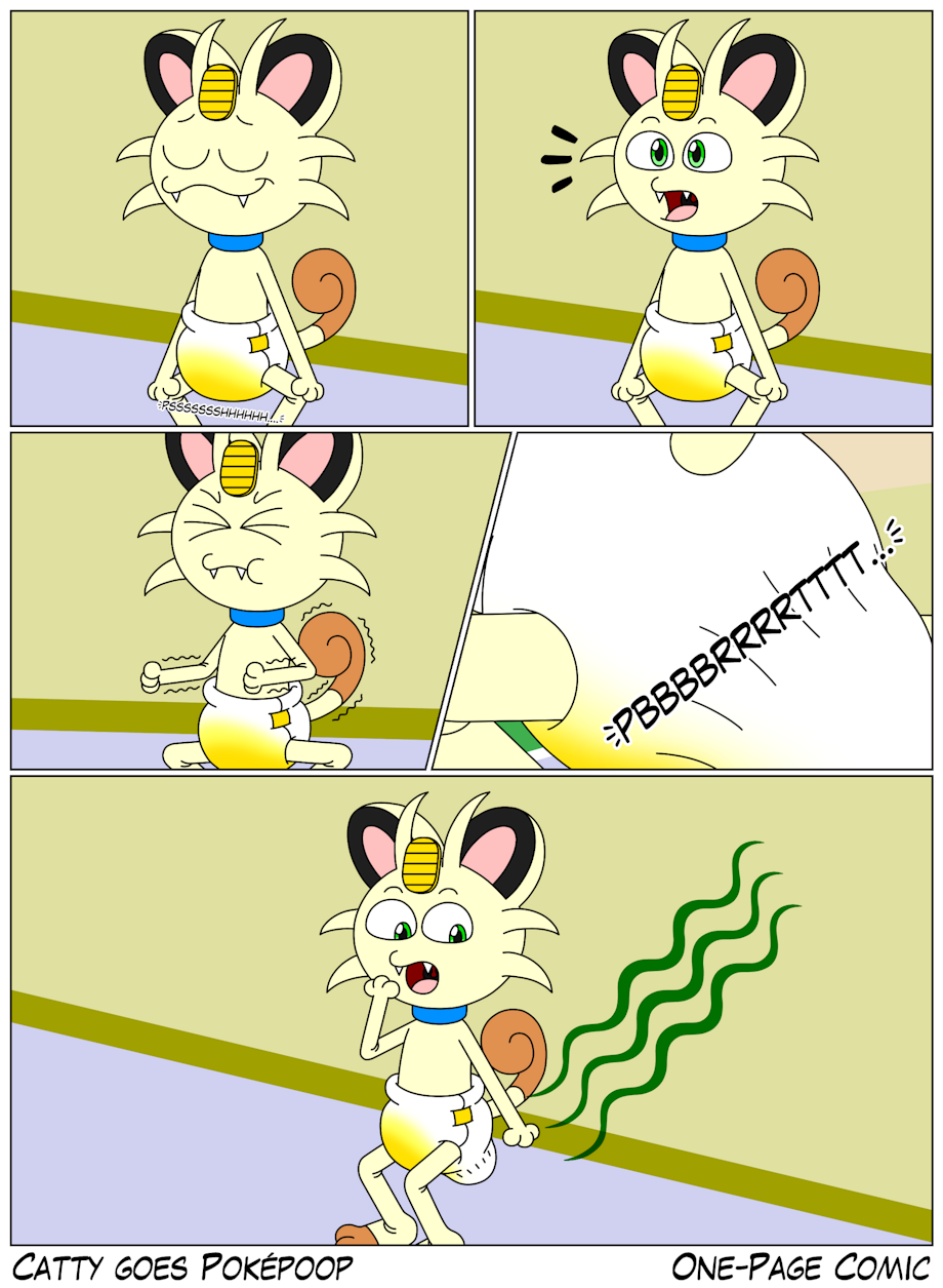 Catty was spending the day at Daisy's house, and he took a nice, relaxing whizz in his diaper when suddenly, he felt something else coming. So he squatted down and filled the back of his pamp with an all-familiar stench causing mess. He then looked back there and wondered how messy it would be for Daisy's mom once she changes his diaper.