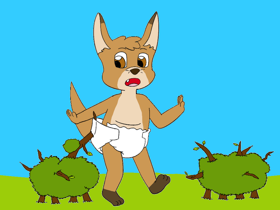 Joey got his diaper stuck on a stray twig again, even worse it punctured a hole in his diaper meaning he'll need a new one.