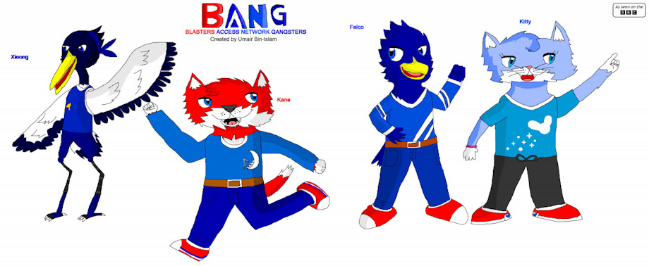 B.A.N.G. Blasters Access Network Gangsters is a British american television show from Dreamworks Animation and BBC Studios and it was created by UmairYoKaiMon. I made Action/Comedy/Animation/Fantasy/Reality/Musical Show from the UK's brand new show on CBBC and it was the best show on cartoons ever.