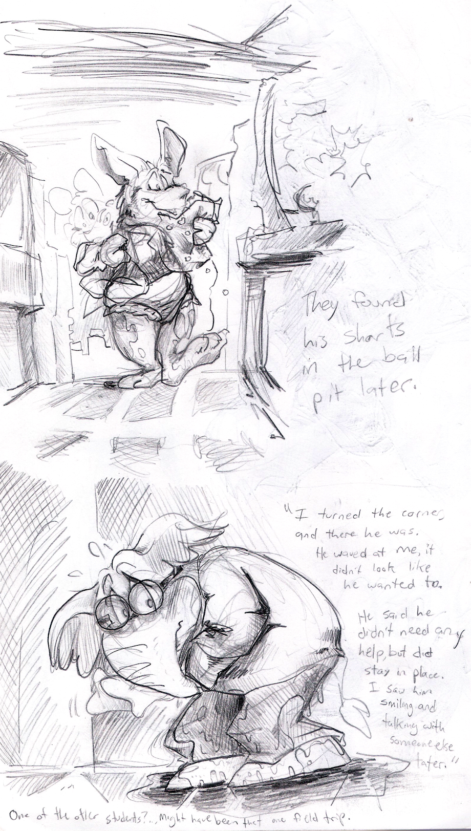 Some sketchy, common scenes from Charlie Capybara's Play Palace. You know how they say the color red makes you feel one way, or a certain shape makes you feel another way? A certain lighting, ambience? Somehow, the way this place had been, it was conducive to a certain, unique mood that was talked about long after the one location closed down, intermittently commented on by it's former patrons as time goes on...