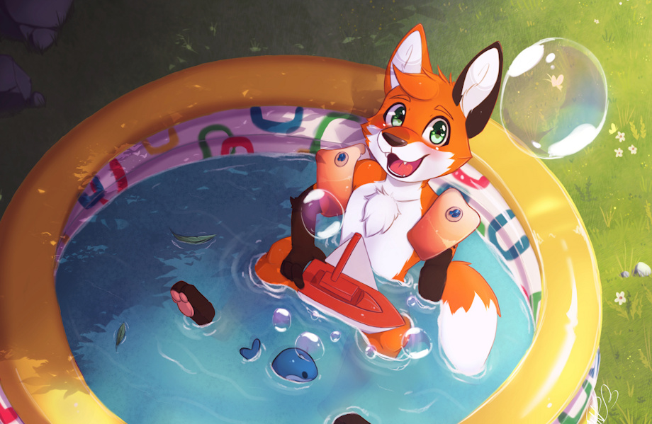 He has a little boat to play with - mostly attacking the boat or pushing it around