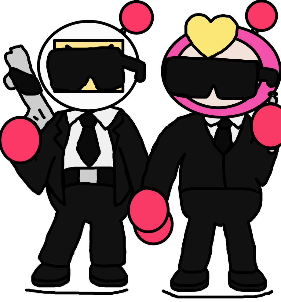 I did the Bomberman characters in the costumes of the black suits from the Men In Black movies which is one of my favorite movies. I also added the weapon for the White Bomberman and the nerualyzer for the Pretty Bomberman in this. That was a fun idea i came up with. It was a crossover i wanted for this.