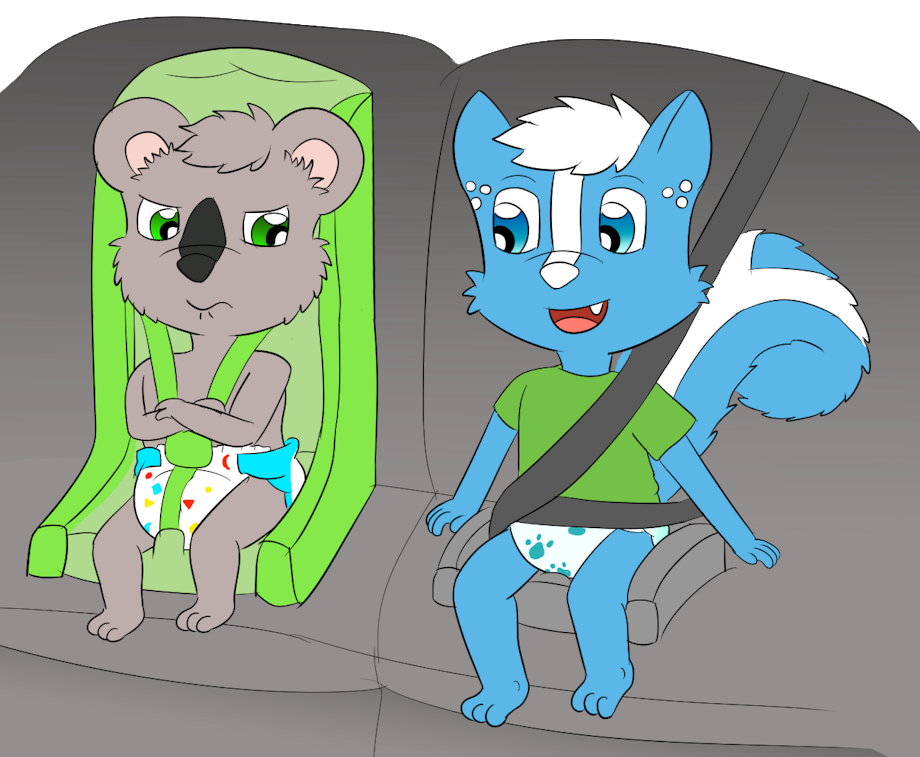 Here's this last month's patreon reward for Kola. he wanted Kola in a baby seat and diaper while gus was on a booster seat and in pullups, as a reward after all our teasings at each other, but hey, it's regression life, you win some, loose others.