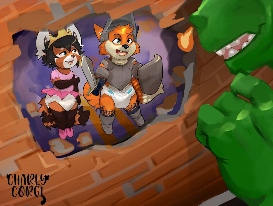 There he was! The big, green and scary dragon! With his big claws he ripped a bit hole into the castle walls! Ready to take the princess - with his fire breath if he needed to! He came dangerously close... BUT! The princess wasn't alone! On her side was the brave pampered knight Jaby!!