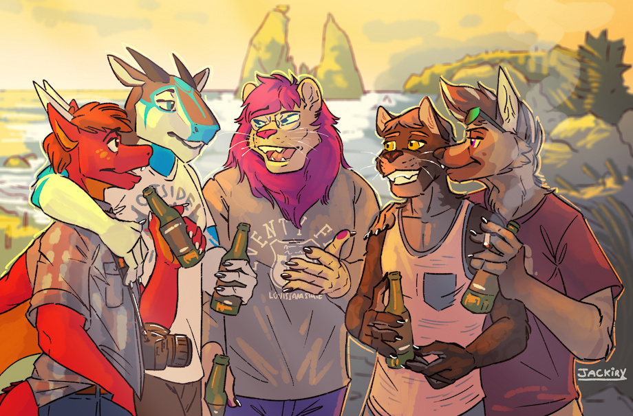 here's a huge commission i did for jacob featuring other friends chilling on the rialto beach :)