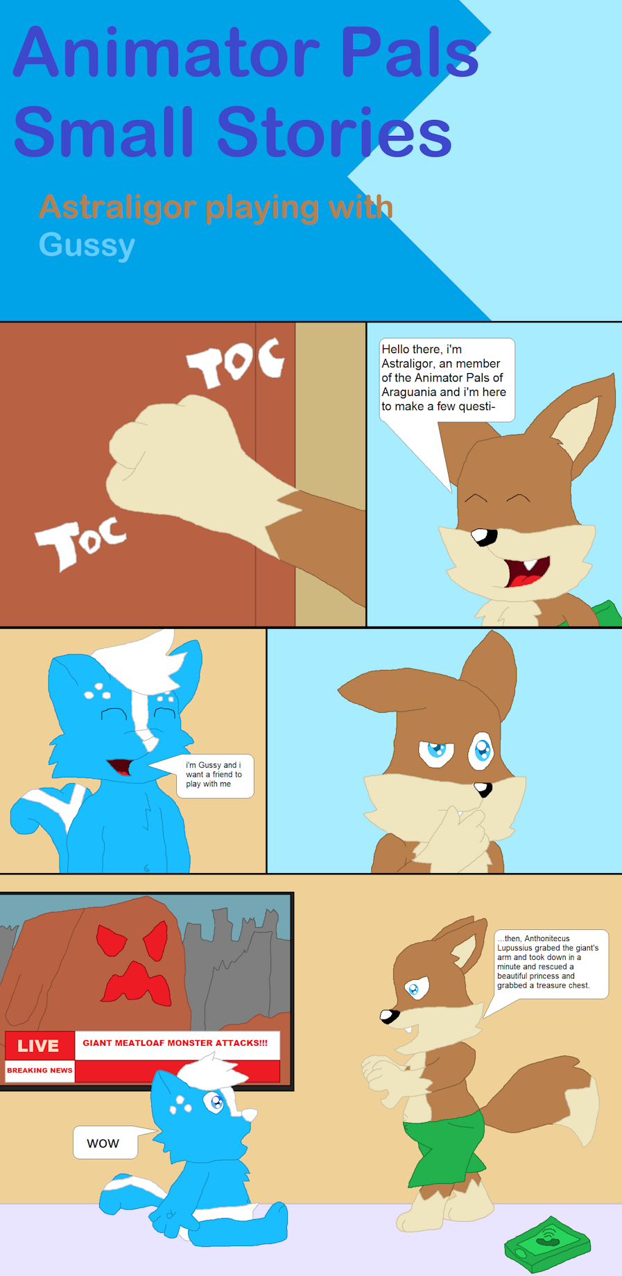 astraligor was getting the reviews for the Animator Pals of Araguania until he knocks on gussy's house and astraligor decided to play with the baby blue skunk for a while