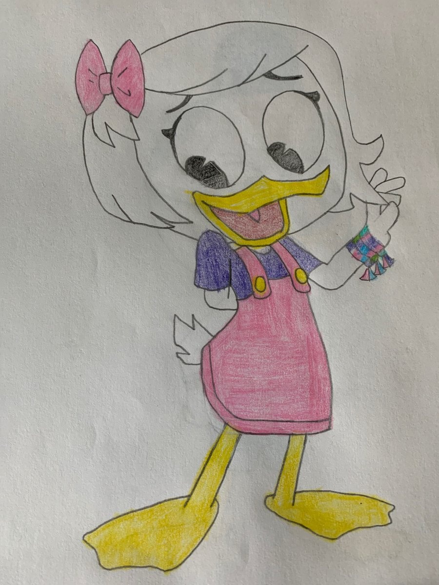 Webby Vanderquack in some dressalls and the three friendship bracelets she wears.