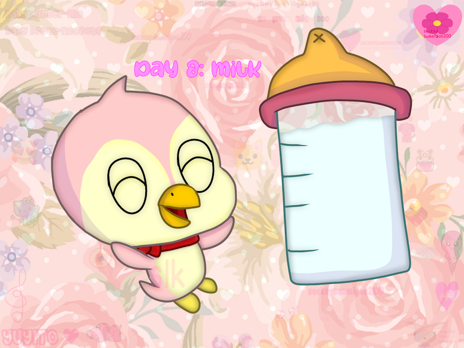 for day 8 of babytember it's up to milk and this time I decided to draw baby bruce he's happy because they're going to give him a bottle of milk 🐧🍼.