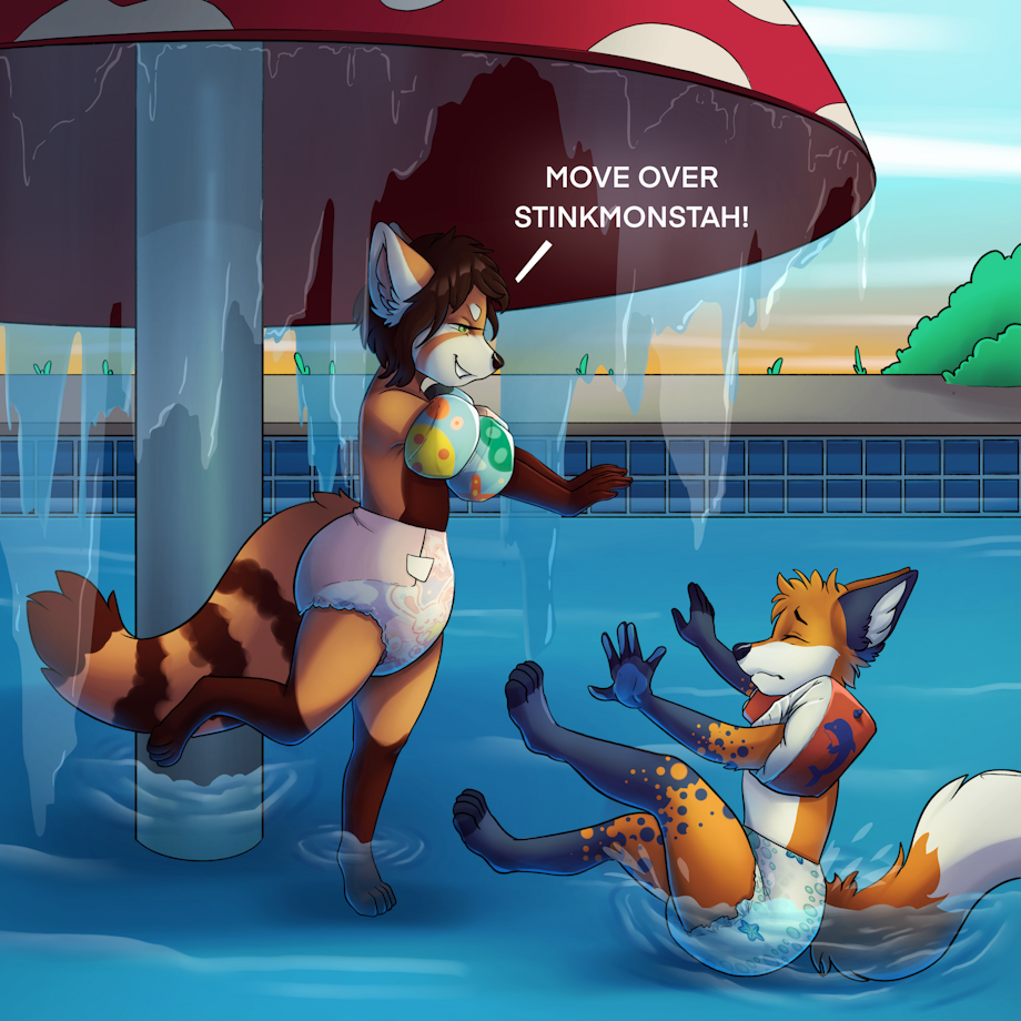 What a mean baby!! Jaby was enjoying himself in the - not so deep - water and wanted to play under the water mushroom well... thingy! But Fyari, that meany, just pushed him away calling him names... Jaby will not accept this! No! He will fight... and he started crying .w. Well...