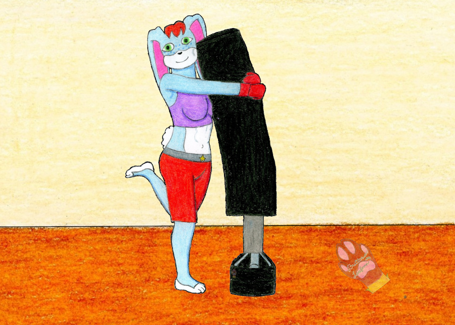 Maria the bunny hugging her punching bag, for no real reason lol just thought it would look cute