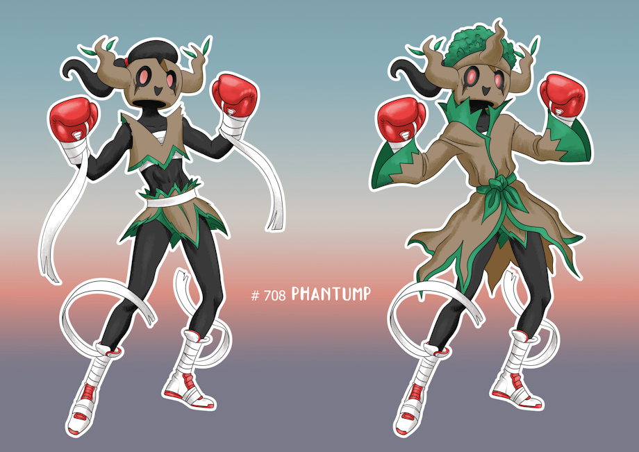 of a design for an androgynous boxing Phantump, with a robe based on the design of Trevanant.
