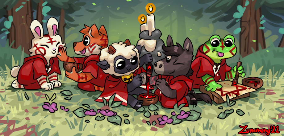 If you look at this picture I'm sure it won't be a big surprise that I'm incredibly into the recently released Cult of the Lamb video game :D The mix of incredibly cute and incredibly violent things in an adorable art style is really up my alley, so I just had to make a little tribute :) I've been working on this picture since day one of the game's release, but because I was making this in my free time, and I have very little free time nowadays, it took me a bit longer than I anticipated... ^^; I hope you like it :)