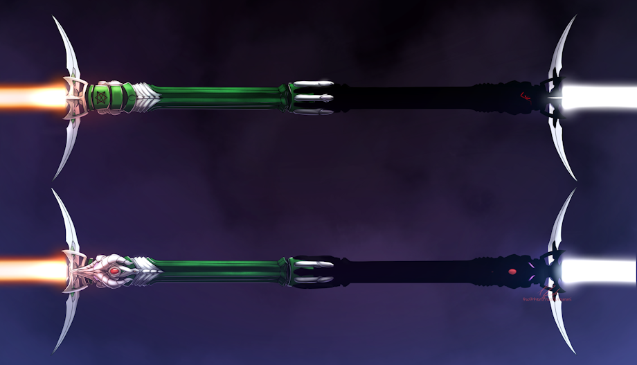 Currently there is the first set during my OC's Jedi time and the dark side influenced post order 66 version featuring the lightsaber resistant blades from an inquisitor's gauntlet... and yes, he had 6 fingers, he was an Anomid.