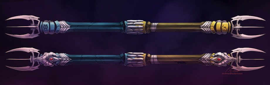 Currently there is the first set during my OC's Jedi time and the dark side influenced post order 66 version featuring the lightsaber resistant blades from an inquisitor's gauntlet... and yes, he had 6 fingers, he was an Anomid.