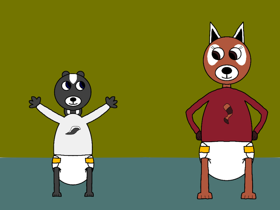 Ling Ling is wearing a long sleeve shirt with a red panda tail on it since its international red panda day, she's standing next to her little brother Fletcher wearing his skunktember shirt since its still skunktember after all.