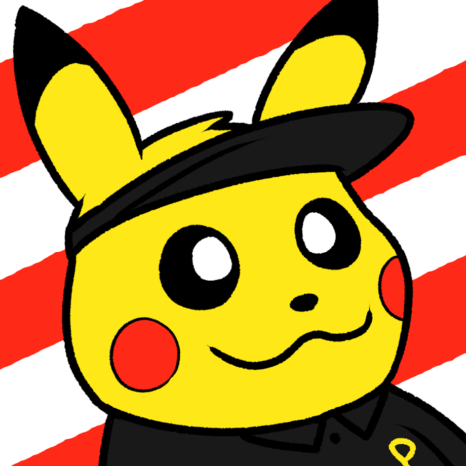 Trainee - my Fast Food Pikachu! I've been drawing and posting him more lately - this is the first lil icon art I made for him, with his lil fast food visor - which I guess is sometimes a hat instead! Good to have multiple outfits for your job, or jobs! He has mutliple jobs, working a lot! ...Not to fetishize the struggle of all us lil workers out there, I just think it's really cute how friendly and helpful and innocent people can be, and how hot their naughty side can be when it finally comes out... or balancing their polite side as things get naughtier. :3