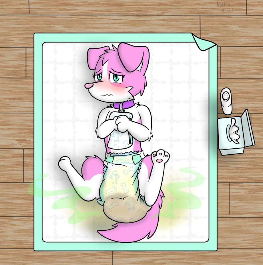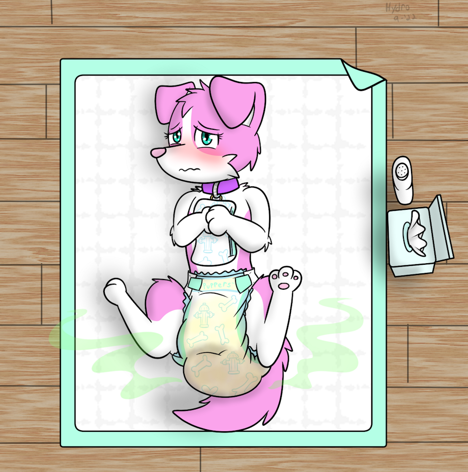 What better place to change a diaper than a puppy pad? I also included some extra versions that show how good of an idea that was, and some added dialogue. I had a lot of fun with this one for sure!