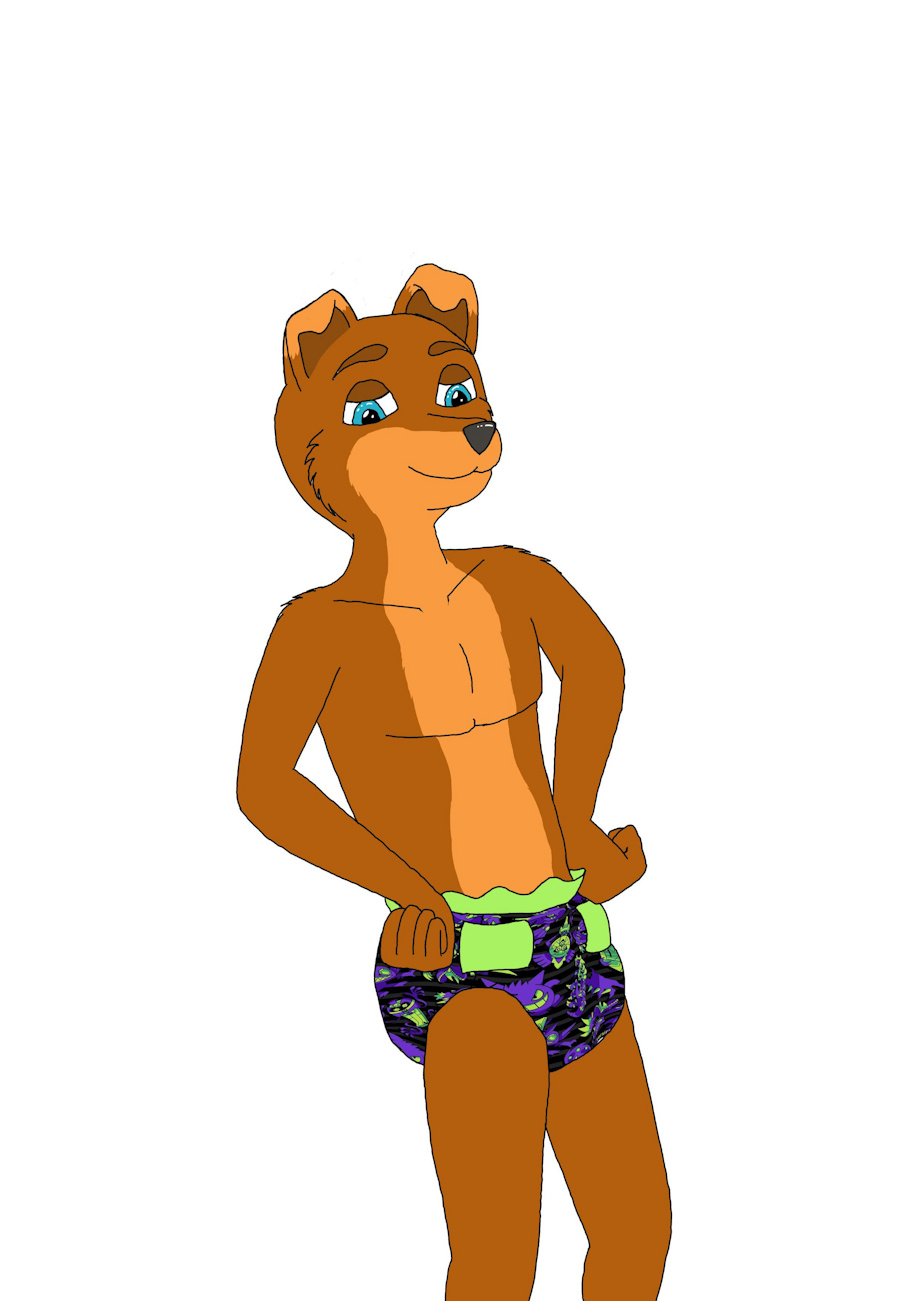 Rocko showing off his new poke ghost themed diaper. With this he's ready for any haunted house his step mom throws at him. Part of an art trade with
