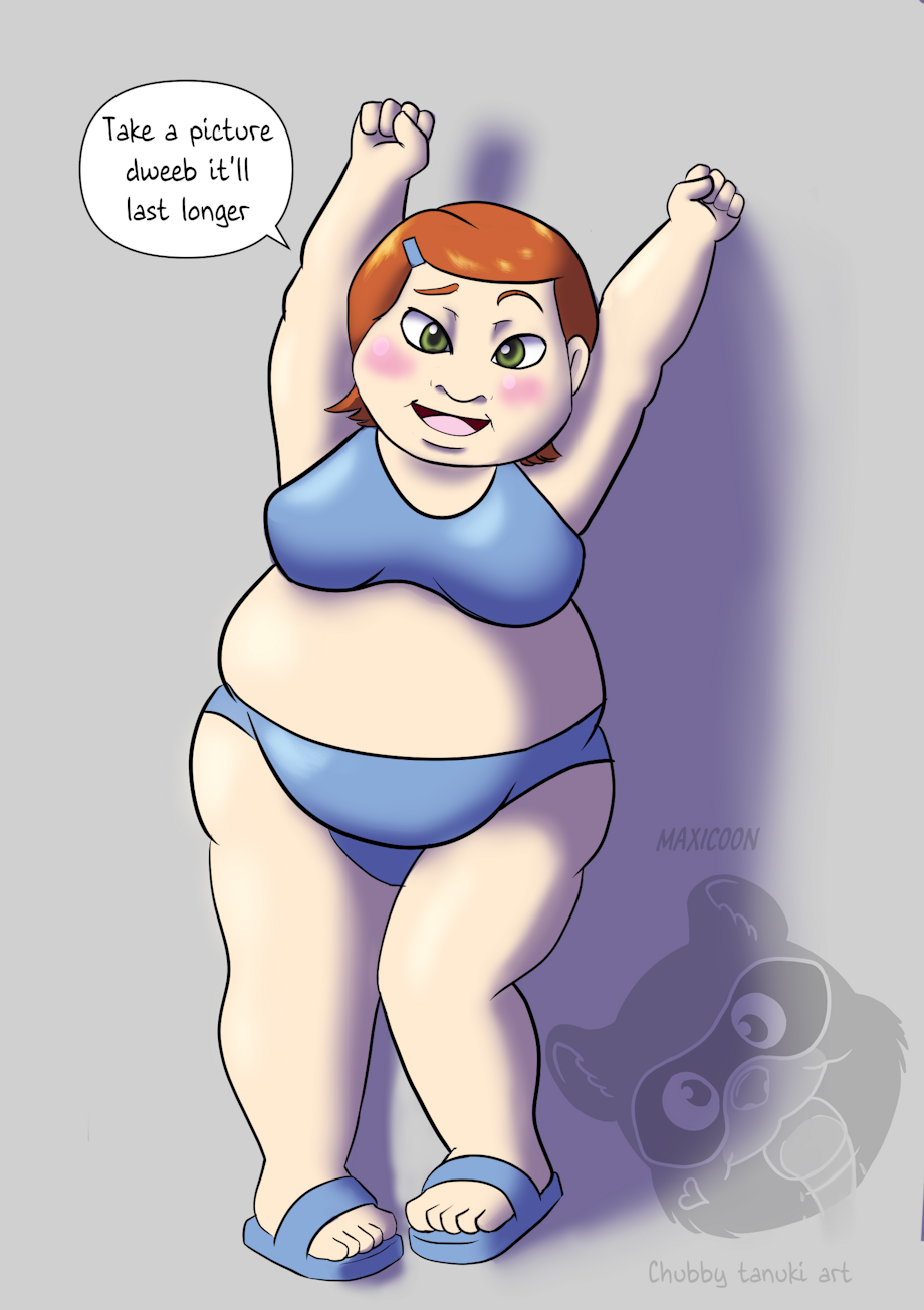 Looks like Ben's diet has been rubbing off on Gwen. Well she seems ready for the pool at least.
