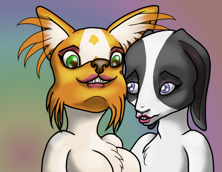 Still not 100% happy with the background. And that headangle on Honeybee showing the underside of her chin is so hard for me to draw for some reason. But overall I really like this picture. It's innocent but flirty. Simple posing, but I think that helps highlight just how different these two are. I feel like this really makes their personalities shine a bit better than their stand-alone pin-ups do. Then again, they were designed to bounce off each other (gigglity) so I suppose that makes sense.