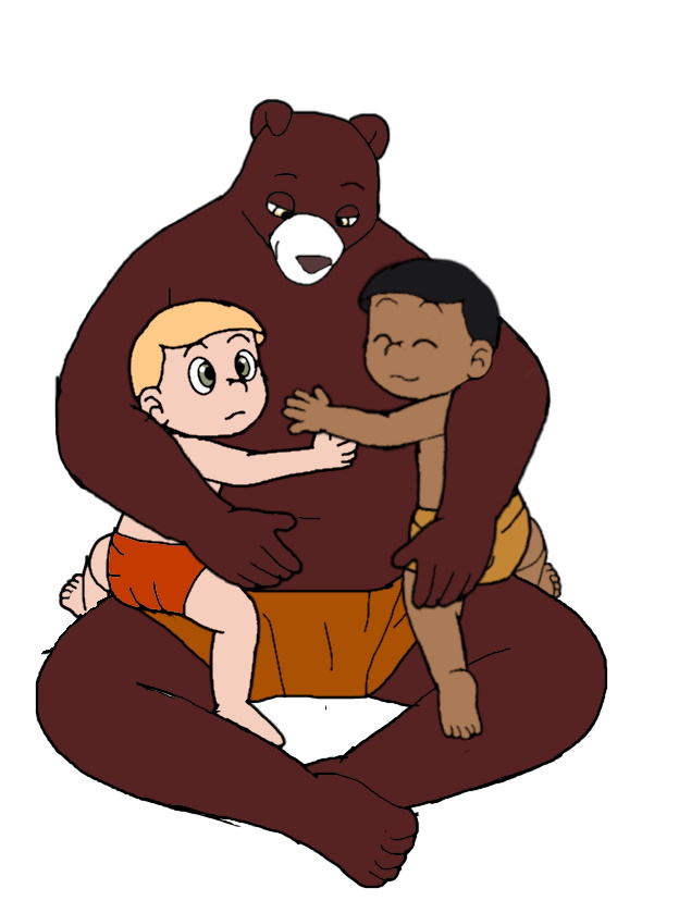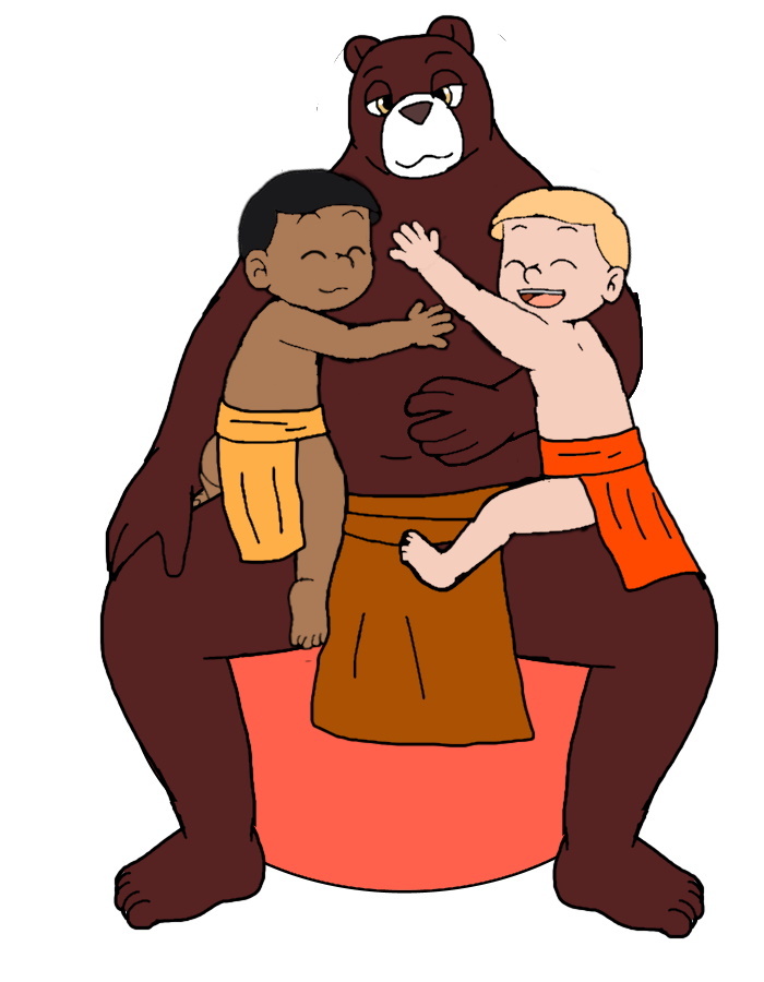 borno - daddy bear, nica - wife borno, lanjan - son borno and nica, jim - brother lanjan, baki - brother lanjan and jim