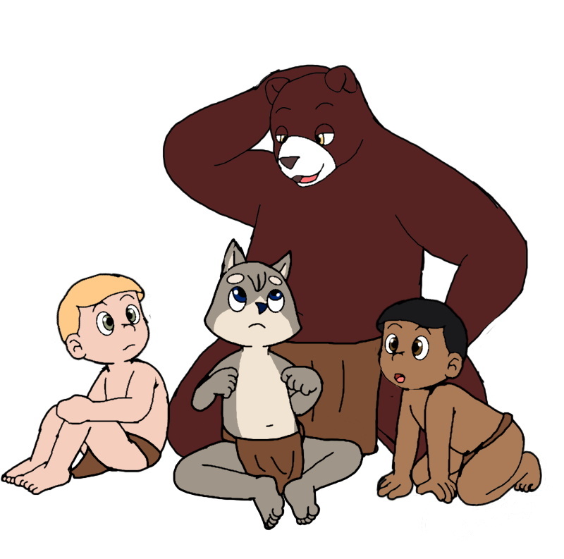 borno - daddy bear, nica - wife borno, lanjan - son borno and nica, jim - brother lanjan, baki - brother lanjan and jim