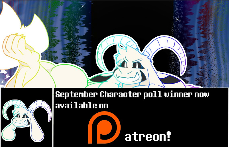 Last months Character Poll winner, A hyper muscled Hyperdeath Asriel, is now available on my Patreon, available to the lowest tier of patrons! If your interested in swole gotes this prior month may be for you~