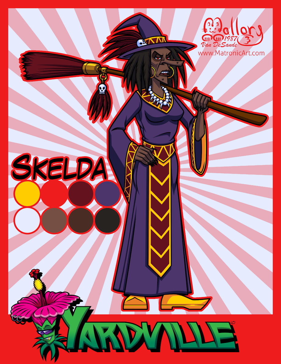 Here is the second to final character sheet of the main cast of Yardville. This is Skelda's "science partner" and fellow villain wannabe Dr. Howard Wattzinniger. He's every bit as mad and radioactive as he looks. He is also the guy that Handy the hand became detached from, which is why Howard has a mechanical claw-hand there.
