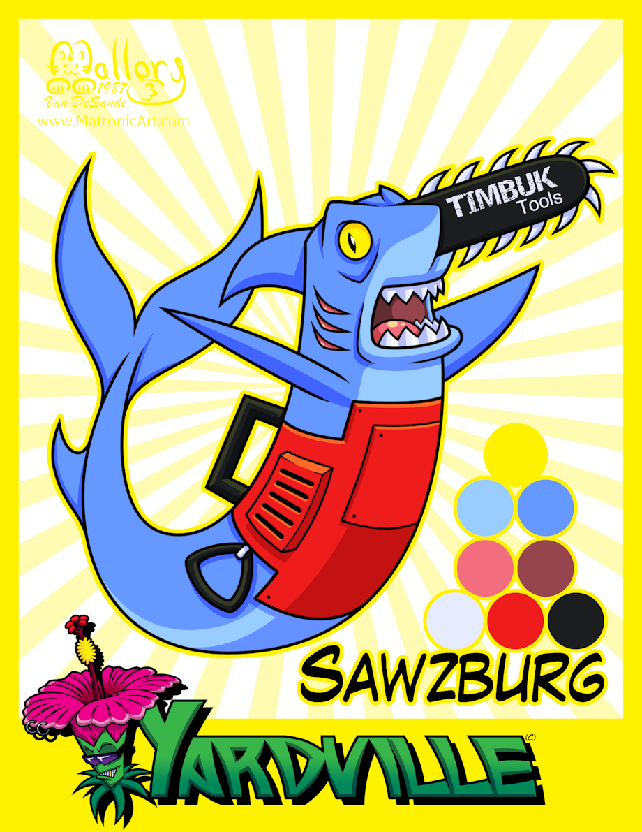 Now the last of the Villain Trio, here is Sawzburg the literal Chainsaw Shark. He is obviously inspired by the Sharknado movies, which my family and I enjoy. He is the "pet/son" of Howard and Skelda, and is often their "Igor", carrying out their dastardly orders.