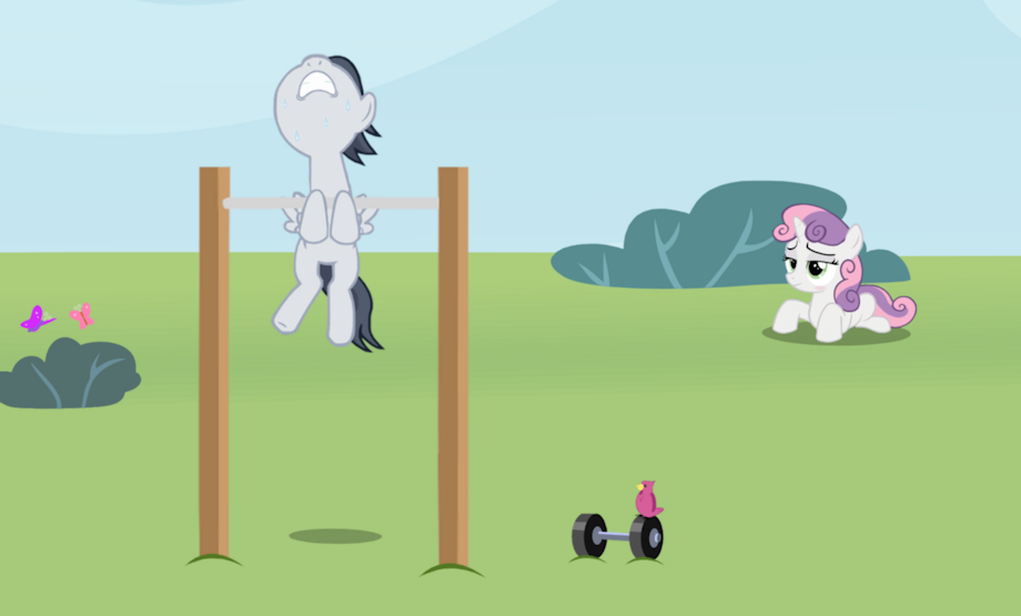 Rumble is an athletic and sporty colt. We all know it. He works hard every day to prove he's the best! Sometimes he invites his fillyfriend to watch him during his exhaustive exercises. And, oh boy, she loves watching him sweat and marvel at his muscules. Every muscule... :3