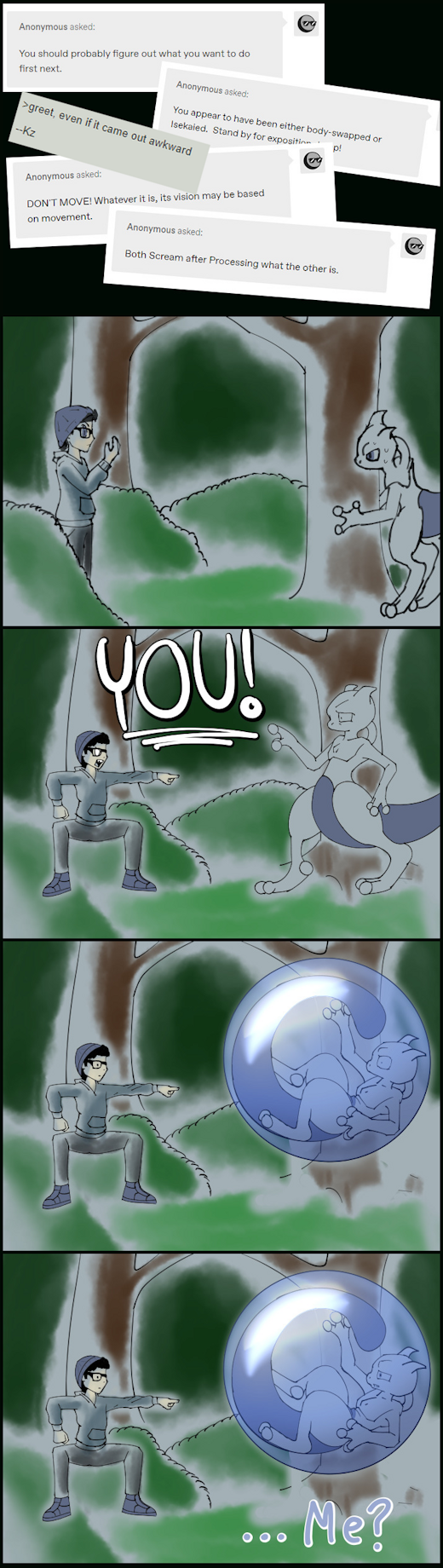 And then a Bobble Dragon comes along and pops the bubble turning the Mewtwo into a 1-up fruit! ...