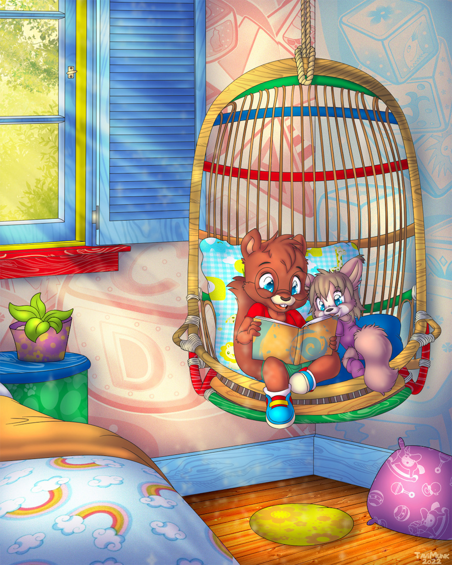 Zee Zee being the awesome big bro that he is, reading a story to Gem.