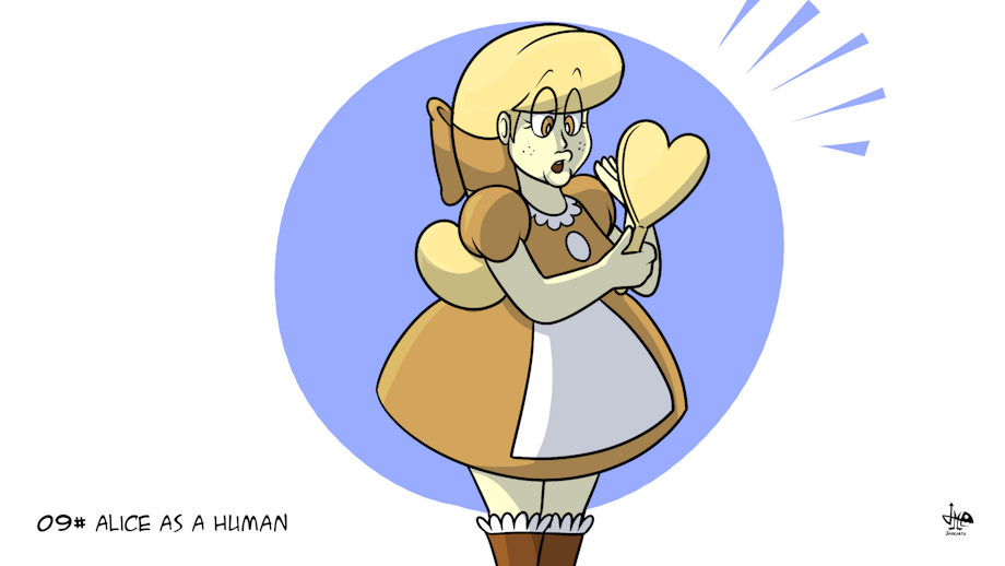 Through the spell of that potion from Shrek 2 someone drank, Alice has been turned into a human... for 24 hours!