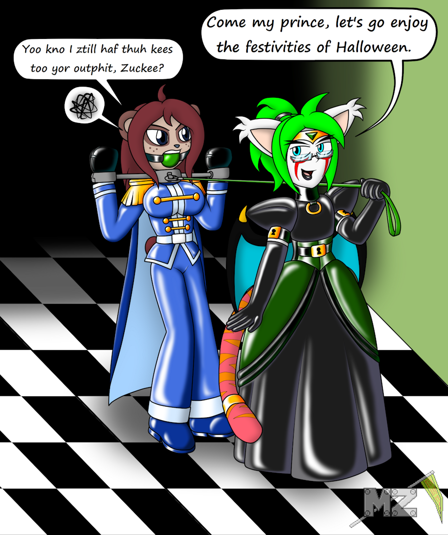 (update) Second part of the For fun pic I did of Prince Zaki waking up locked in a Princess Dress thanks to his maid Dryad. So zaki decided to Return the Favor by crossdressing his maid as a bound prince. and take her out to for the holydays. Translation for what Dryad is saying is this. "You know I still have the keys to your outfit, Zaki?"