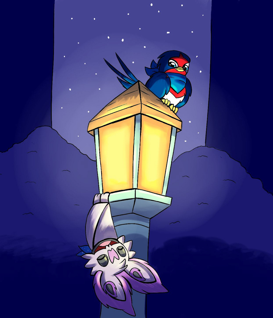 Charlie and epsilon went on atrip to town, having fun on a night lamp. This was a nice color pallete practice.