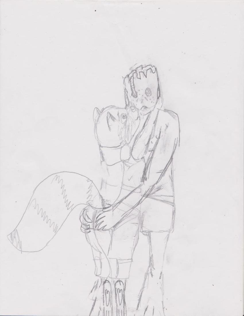 -2- In the second picture they should be still pretty romantic, but surprised that they are getting younger, in particular, Groot will have lost a lot of height and muscles, becoming a teenager again, and so Rocket will be a lot heavier for him to hold in his arms. Groot can be struggling to hold onto Rocket and Rocket can be looking at him in astonishment, but holding Groot’s more teenaged face with his hands cupping Groot’s chin to try to comfort him perhaps. Groot might have some pimples or pockmarks on his face typical of teenagers and his body should be thinner with much less muscle, his moss and body hair much more sparse and his shorts should be loose and baggy.