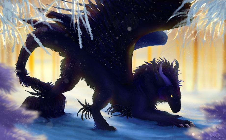 Description: The coldness of an icy winter morning can hardly diminish the playful spirit of dragon looking for some fun activities to pass the time.